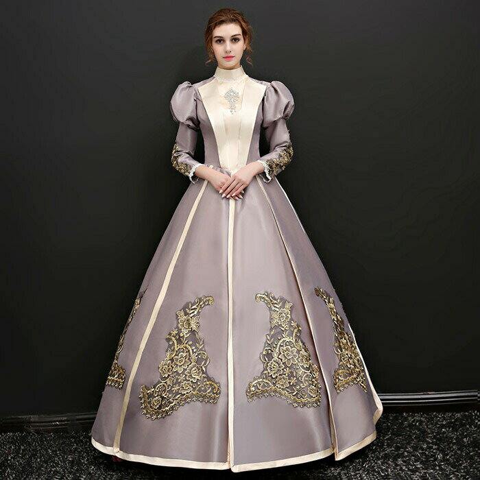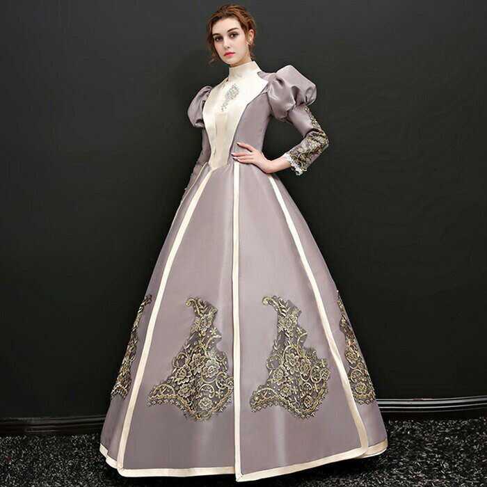 ワンピース 貴族服 ヨーロッパ風 ロング丈 現代劇演出服 お姫様 女王 王族服 復古風 中世期風 洋服 パーティードレス ステージ 舞台衣装 オペラ声楽 演奏会 イベント 文化祭 グレー ワインレッド ベルスリーブ 仮装 クリスマス 撮影用 パニエ追加可