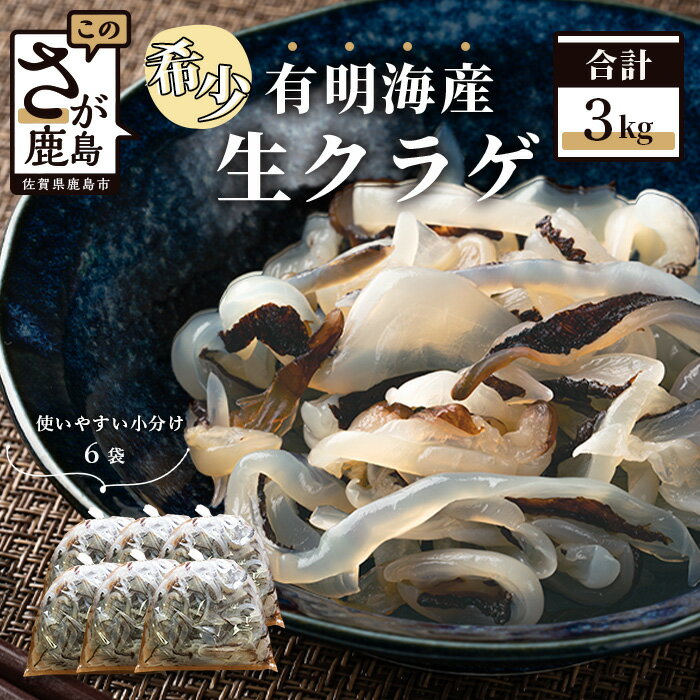 【ふるさと納税】有明海産 生くらげ 3kg 500g×6袋 お刺身くらげ 中華くらげ クラゲ ミョウバン・食塩処理済 珍味 おつまみ おかず ヘルシー コラーゲン 送料無料 B-433
