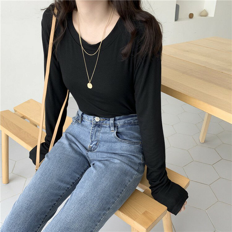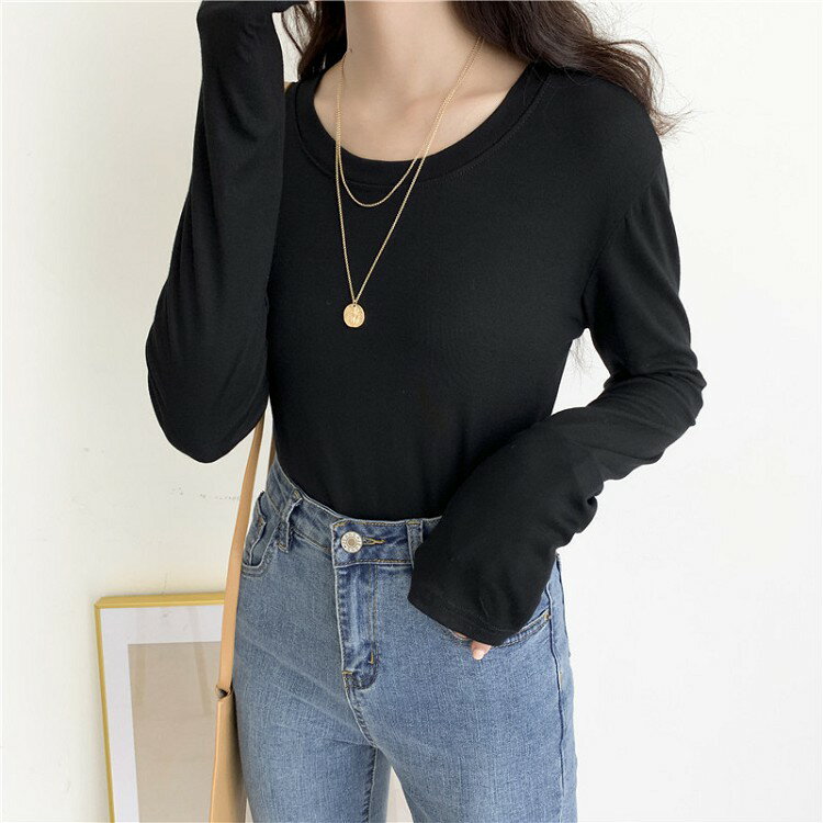 【メール便送料無料】tシャツ レディース 長袖 秋冬 ベーシック コットン シンプル 無地 定番 ゆったり 大きいサイズ Tシャツ カットソー セレブファッション カジュアル ジュニア 白い 黒い 桃色 緑 アウター ランドネック 着回し