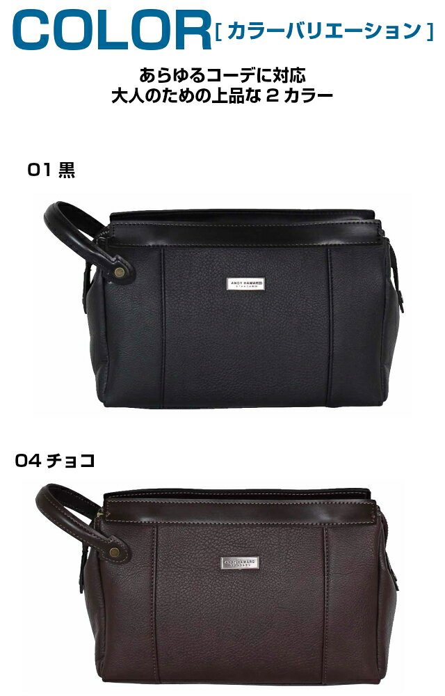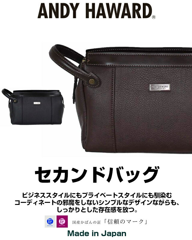 ・ANDY HAWARD(アンディハワード) 安心の日本製、ソフトシボ合皮のシックなセカンドバッグ。