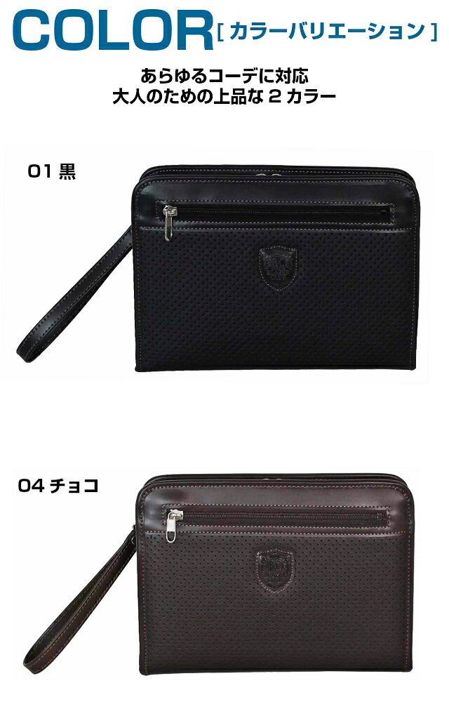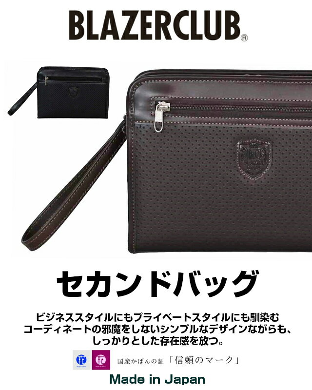 ・BLAZER CLUB(ブレザークラブ) 安心の日本製、パンチング合皮を使用したセカンドバッグ。